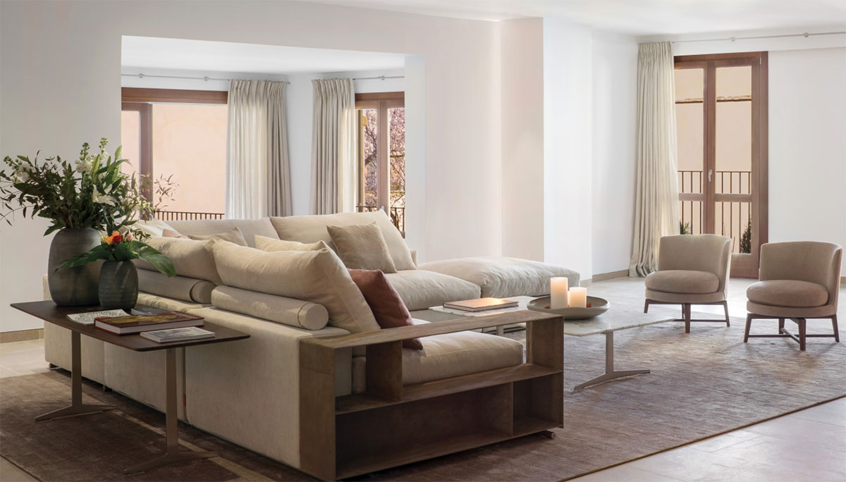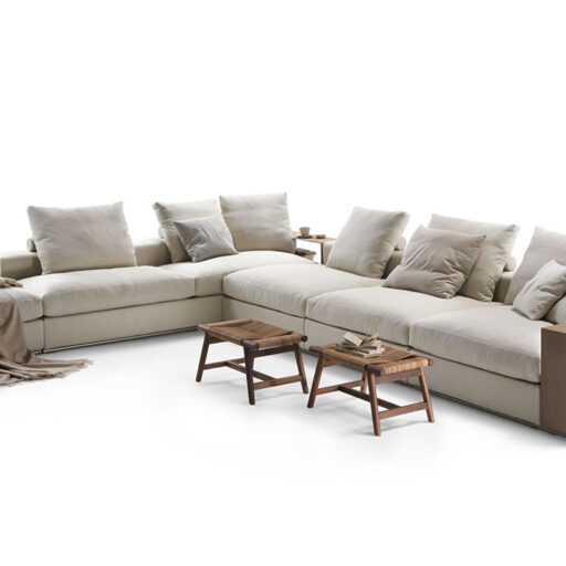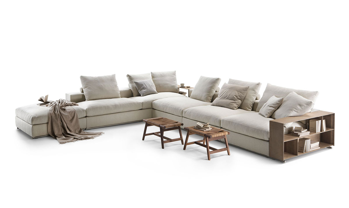Bestseller incontesté de la collection Flexform, Groundpiece a de fait révolutionné le concept même de canapé, en introduisant différentes innovations. Tout d’abord, une ligne déstructurée et de nouvelles dimensions : le canapé Groundpiece est bas et profond, conçu pour favoriser une assise plus détendue et informelle. Groundpiece représente la quintessence du confort selon Flexform et est particulièrement attrayant et accueillant de par ses grands coussins en duvet d’oie. Groundpiece permet une personnalisation extrême des garnissages qui peuvent être réalisés en duvet d’oie, dans la version « premium », ou en Dacron.