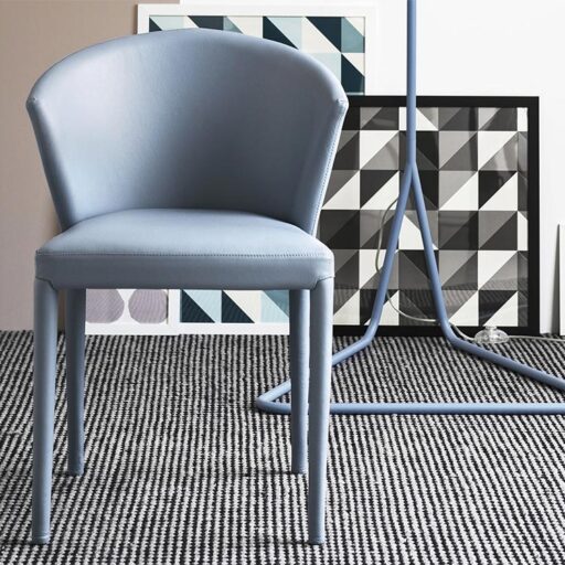 AMÉLIE est une chaise aux lignes douces et au design unique et contemporain. Le large dossier enveloppant et l’assise à sangles élastiques garantissent un confort et une souplesse incomparables. Complètement revêtue, même sur les pieds en métal, elle est disponible en tissu traité antitache et antibactérien ou en cuir véritable, dans notre boutique de chaises designs sur internet.