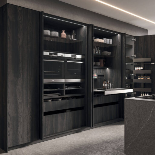 La large gamme de finitions disponibles et les différents types de modularités permettent de créer des projets de cuisine personnalisés en fonction des besoins de l’utilisateur. Le même projet peut être adapté à toutes les finitions sans subir de modifications significatives.