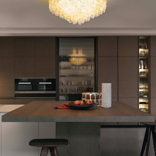 Le modèle Trail de Poliform est une réinterprétation contemporaine de la porte à cadre classique. Son élément caractéristique est la poignée intégrée sur toute la largeur de la porte. Un détail esthétique de grand impact visuel, à la fois lorsqu’il est utilisé dans les meubles bas et dans les colonnes, également en combinaison avec les vitrines.