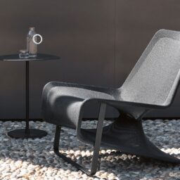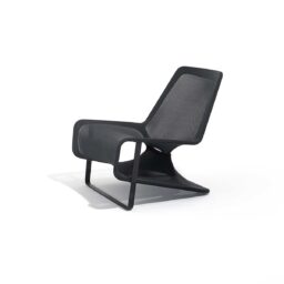 Aria est une chaise longue à la silhouette aérienne et délicate, presque immatérielle. Il est composé d'un tissu en maille extrêmement résistant et élastique qui s'enroule autour de la structure métallique tubulaire en acier comme une chaussette, offrant une assise large sans rembourrage traditionnel.