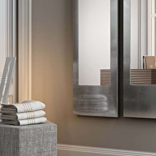 Le grand miroir en bois Alisei est un miroir de création traditionnelle. Son cadre en bois est revêtu de feuille d’or ou d’autres métals. Ce grand miroir de fabrication artisanale se distingue par sa finition qui peut être sélectionné afin d’ apporter une touche chaleureuse ou plutôt minimaliste selon le reste de votre intérieur.