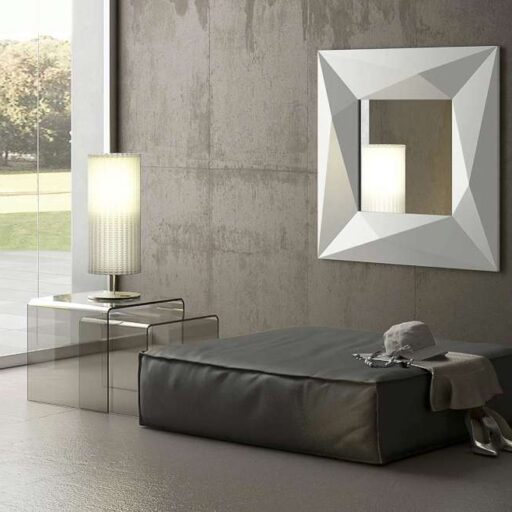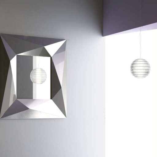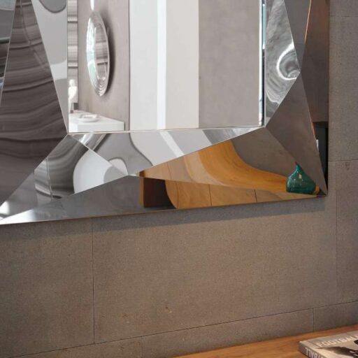 Diamond est un miroir raffiné avec cadre faceté en inox brossé. Simple et épuré, ce miroir fera de votre mur une oeuvre d’art. Diamond est disponible en deux dimensions et avec un cadre en inox brossé, en inox laqué blanc ou en titane.
