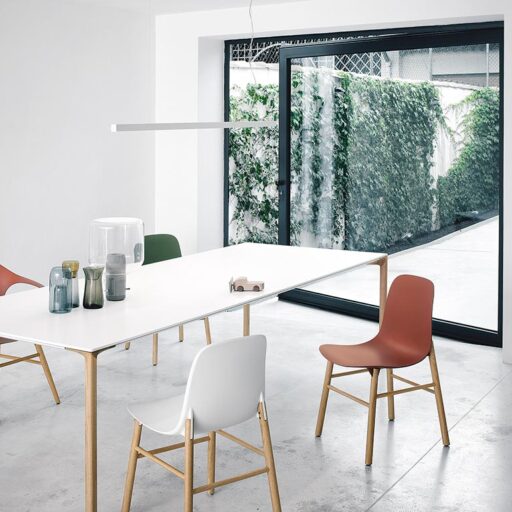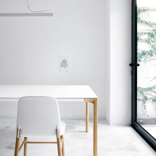 Son plateau est disponible en stratifié Pure-white blanc ou en Fenix-NTM® noir effet soft-touch. Sa structure est en aluminium laqué époxy, blanc ou noir, assorti au plateau. Le nouveau défi lancé par Kristalia en collaboration avec le duo de designers Lucidipevere a donné vie à une création élégante et minimale.
