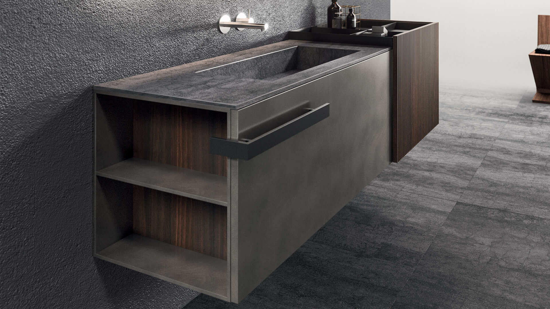 Per chi predilige il minimalismo e l’essenzialità della materia. Per chi ricerca il proprio benessere nella purezza estetica di elementi nobili.