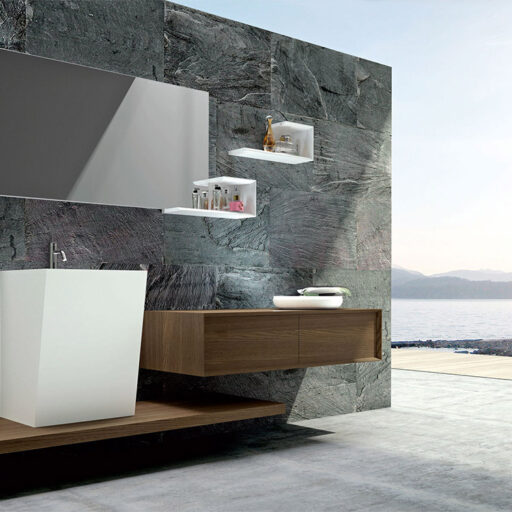 Il nuovo arredo bagno Moduladue, oltre alla ricerca nel design, si distingue per le innovative soluzioni tecniche adottate, tra le quali l’utilizzo dell’avveniristico materiale Fenix Ntm™.