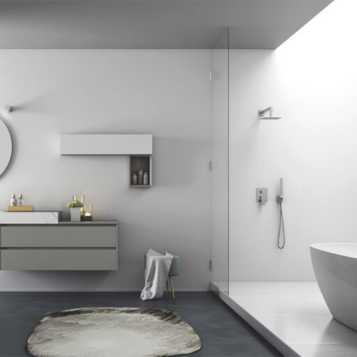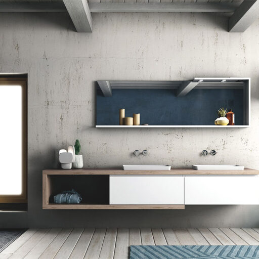 Puntotre propone il sistema gola con una propria linea sul bordo del frontale, che rende percepibile lo spessore di 5mm. La gamma delle finiture si estende dai melaminici 3D ai legni pregiati, passando per l’intera gamma colore RAL.La pulizia delle linee, unita all’assenza di componenti metallici sul frontale, giocano un ruolo determinante nella scelta di questo sistema adatto ad ogni ambiente bagno.