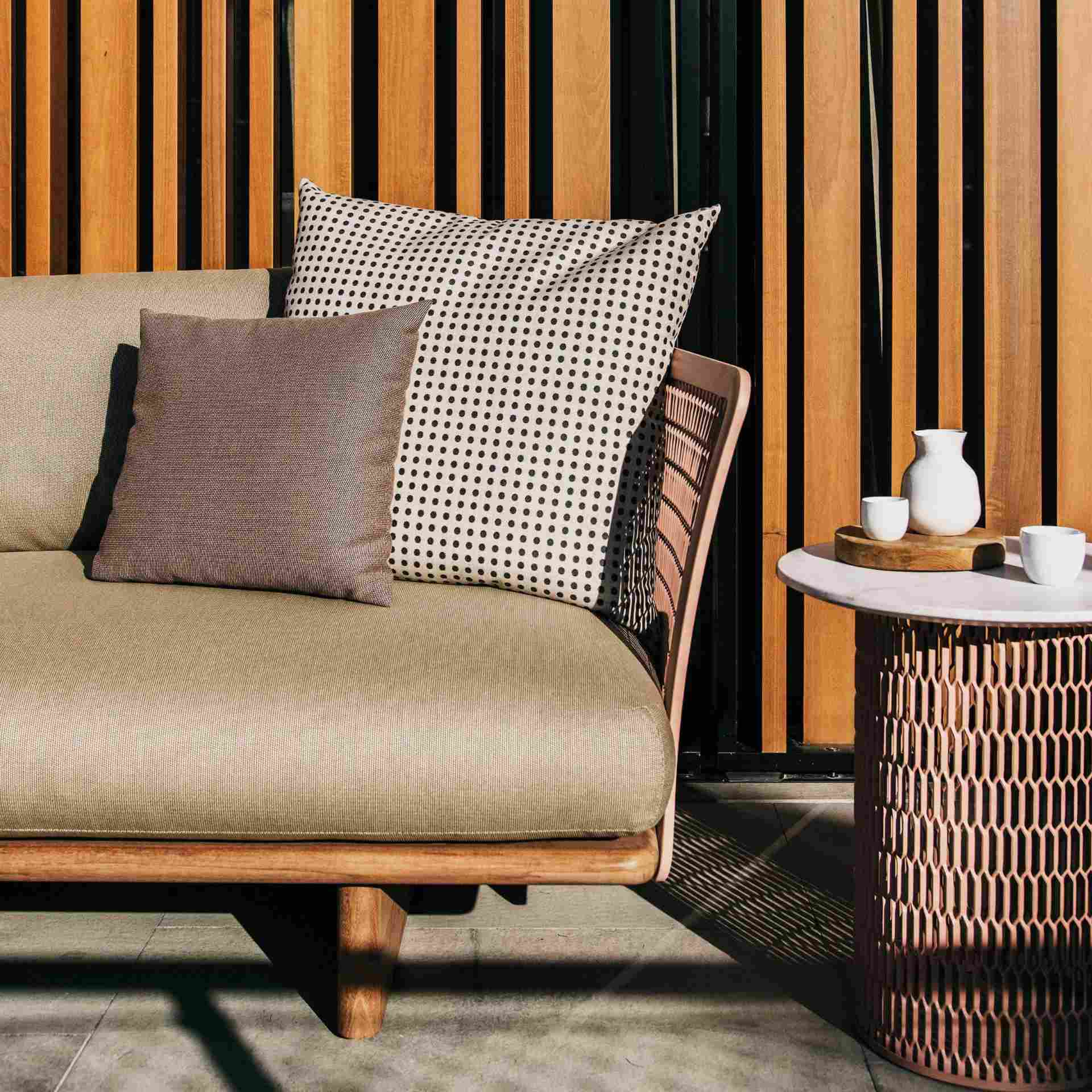 Questa collezione “intrecciata” rievoca alcune facciate architettoniche, che filtrano l’ambiente circostante senza impedire il fluire dell’aria e la luce. Materiali industriali e naturali, superfici dure e morbide, volumi trasparenti e solidi sono opposti per creare questa linea di arredi per esterni basata sui contrasti.