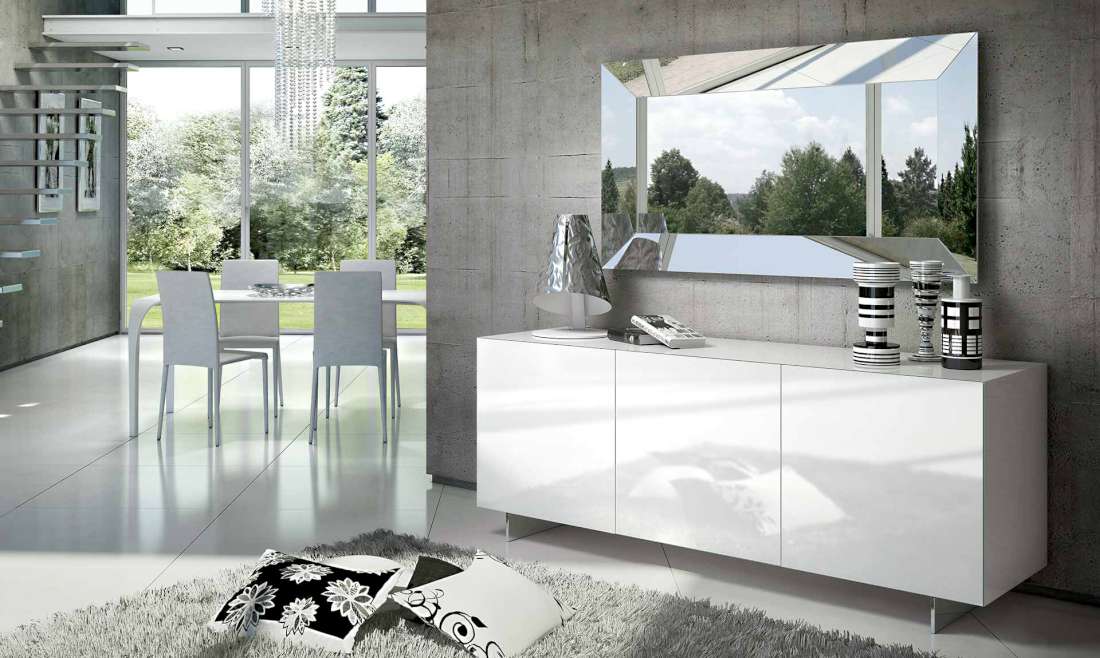 La credenza Essenzia (Riflessi) si ispira a una purezza formale per esprimersi in tutta la sua geometrica linearità. A volte diventano però significativamente espressive nel momento in cui “indossano” colori audaci assecondando l’idea del colore come rinnovata vocazione al design. Tutte le superfici, interne ed esterne, sono personalizzabili tra l’ampia palette di colori RAL a disposizione. Taglio a 45° nelle ante e nei bordi e un pratico sistema push pull. Piedini in alluminio lucido ne evidenziano il design. Essenzia è disponibile a 2 ante, 3 ante, 3 ante alta e 4 ante quadrotto. Le finiture possibili sono il laccato bianco opaco o lucido e laccato lucido o opaco in tutti i colori della scala RAL.