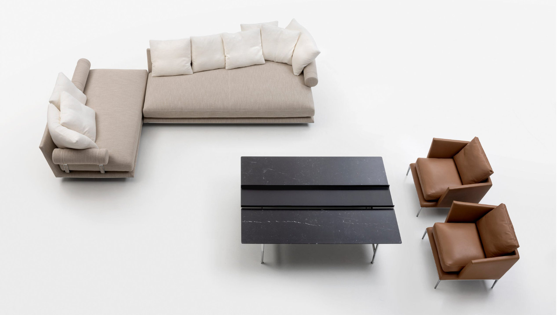 Noonu è un atollo, un angolo di puro relax tra i colori delle Maldive. Noonu è anche il nome del nuovo sistema di imbottiti che Antonio Citterio ha disegnato per B&B Italia, un progetto nuovissimo che nasce per proseguire e completare il percorso avviato nel 2018 con B&B Atoll. La collezione Noonu lavora in sintonia con le precedenti collezioni di B&B Italia, per creare un vero e proprio arcipelago di proposte, dove l’unicità distintiva di ogni elemento contribuisce a raccontare una storia coerente. “Il tema delle isole parte a metà degli anni Ottanta - afferma l’architetto Antonio Citterio – quando con la linea Sity ci siamo inventati delle nuove tipologie. Abbiamo iniziato a parlare di divano con penisola e isola, ma queste terminologie erano per certi aspetti inusuali. Oggi sono entrate nel lessico comune”. Quella intuizione pionieristica si trasforma oggi in una visione organica, nella quale Noonu si propone quale approdo e punto di partenza per esplorare nuovi territori. Noonu è un sistema di imbottiti dalle dimensioni importanti e dalla grande flessibilità. La struttura portante scompare alla vista creando "isole" che appaiono quasi sospese da terra, che sembrano fluttuare. La sedute sono profonde, con un cuscino sedile unico di grandi dimensioni che garantisce una comodità estrema, invita al relax e caratterizza l’estetica. Lo schienale inclinato è pensato per accogliere cuscini da disporre a piacimento. A dare ulteriore carattere alla proposta, un elemento di appoggio da posizionare a piacere: un cuscino a rullo vincolato da sofisticate cinghie a una struttura in pressofusione in alluminio da alloggiare sotto al cuscino di seduta. In questo modo si potrà utilizzare liberamente come elemento terminale bracciolo o come poggiatesta, per leggere o per lavorare, da inserire tra le sedute o togliere a seconda delle occasioni di utilizzo. Come racconta Antonio Citterio, la storia di Noonu affonda le sue radici in un percorso avviato qualche anno fa: “Atoll e Noonu partono da un’idea comune, ovvero un cilindro che fa da bracciolo e cuscini appoggiati liberamente. Le novità di Noonu sono la seduta, apparentemente sospesa, che arriva fino a terra e le nuove tipologie di elementi che abbiamo definito "a pianoforte" e "a vela", che conferiscono identità e ricchezza al progetto”. Gli elementi di base di Noonu sono quattro, ovvero una forma quadrata, una rettangolare, oltre alle inedite geometrie “a pianoforte” e “a vela”. La base a pianoforte crea una curva accogliente sullo schienale, mentre la vela definisce un volume tondo e panciuto sul davanti. Antonio Citterio le ha progettate come “chaise longue naturali”, vere e proprie evoluzioni del modulo a penisola, nuove forme organiche votate al relax più totale, come nella natura dei luoghi speciali da cui Noonu prende il nome. Ogni componente di Noonu presenta alla base un profilo metallico in alluminio preformato, curvato, una striscia che si dispone lungo tutto il perimetro della struttura e la definisce, da scegliere liberamente tra differenti finiture. Le medesime finiture sono disponibili anche per i sostegni degli elementi a rullo. Noonu viene presentato in un nuovo tessuto in 12 varianti di colore: tinte unite e mélange in nuance neutre, ma anche in sofisticati toni di blu, verde, rosso e arancione. Si tratta di tinte decise, ma al contempo estremamente domestiche, studiate per poter essere accostate tra loro nei diversi elementi di ogni singola composizione (struttura, cuscini, rulli), arrivando così a creare soluzioni personalizzate di estrema eleganza. Oltre che in tessuto, Noonu è previsto con rivestimento in pelle. Come sostiene Antonio Citterio, “Noonu è una vera e propria isola domestica”. E questa isola potrà utilizzare le linee rette e le curve dei quattro componenti base per dialogare con le pareti, ma anche per abitare il centro della stanza e creare vere e proprie isole dinamiche. Gli elementi di Noonu possono vivere come oggetti singoli, combinati a creare composizioni personalizzate, oppure selezionati in rapporto dialettico con elementi provenienti dalle collezioni B&B Italia, come le sedute e i pouf B&B Atoll, i complementi Mirto, i tavoli Diesis e Pianura. “Da Atoll a Noonu – conclude Antonio Citterio – ci troviamo di fronte a un percorso che si è sviluppato in anni diversi e che finalmente oggi possiamo presentare come un unico progetto, un vero e proprio arcipelago”.
