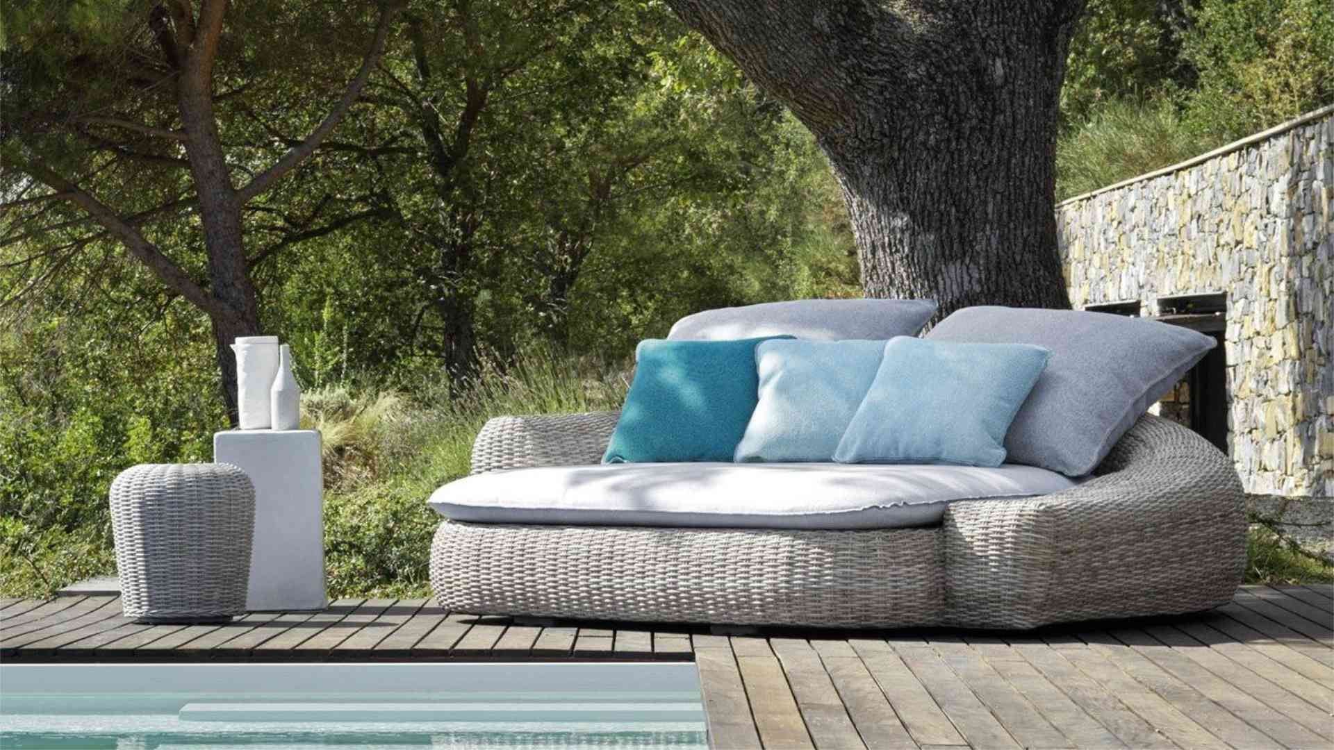 Forme morbide ed extra comfort per le poltrone e i divani della collezione Panda, realizzati con struttura in alluminio, intreccio in fibra sintetica di polietilene e morbidi cuscini oversize. La tradizione dell’intreccio viene reinterpretata da Gervasoni per l’outdoor con l’utilizzo di fibre sintetiche di ultima generazione, sviluppate per resistere all’acqua e alla luce e per mantenere nel tempo le qualità tecniche e cromatiche che le caratterizzano. La fettuccia estrusa in polietilene, utilizzata per la collezione ‘Panda’, è una fibra dall’aspetto naturale, forte, flessibile e durevole.