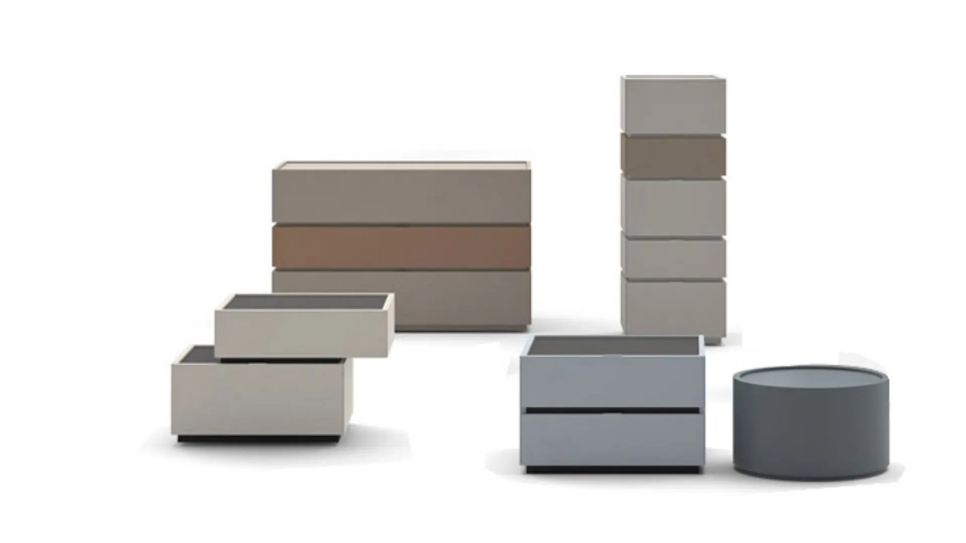 I contenitori Cidori sono caratterizzati da frontali e schienali rialzati che incorniciano, come in un vassio personalizzabile con il top in vetro laccato lucido o satinato.