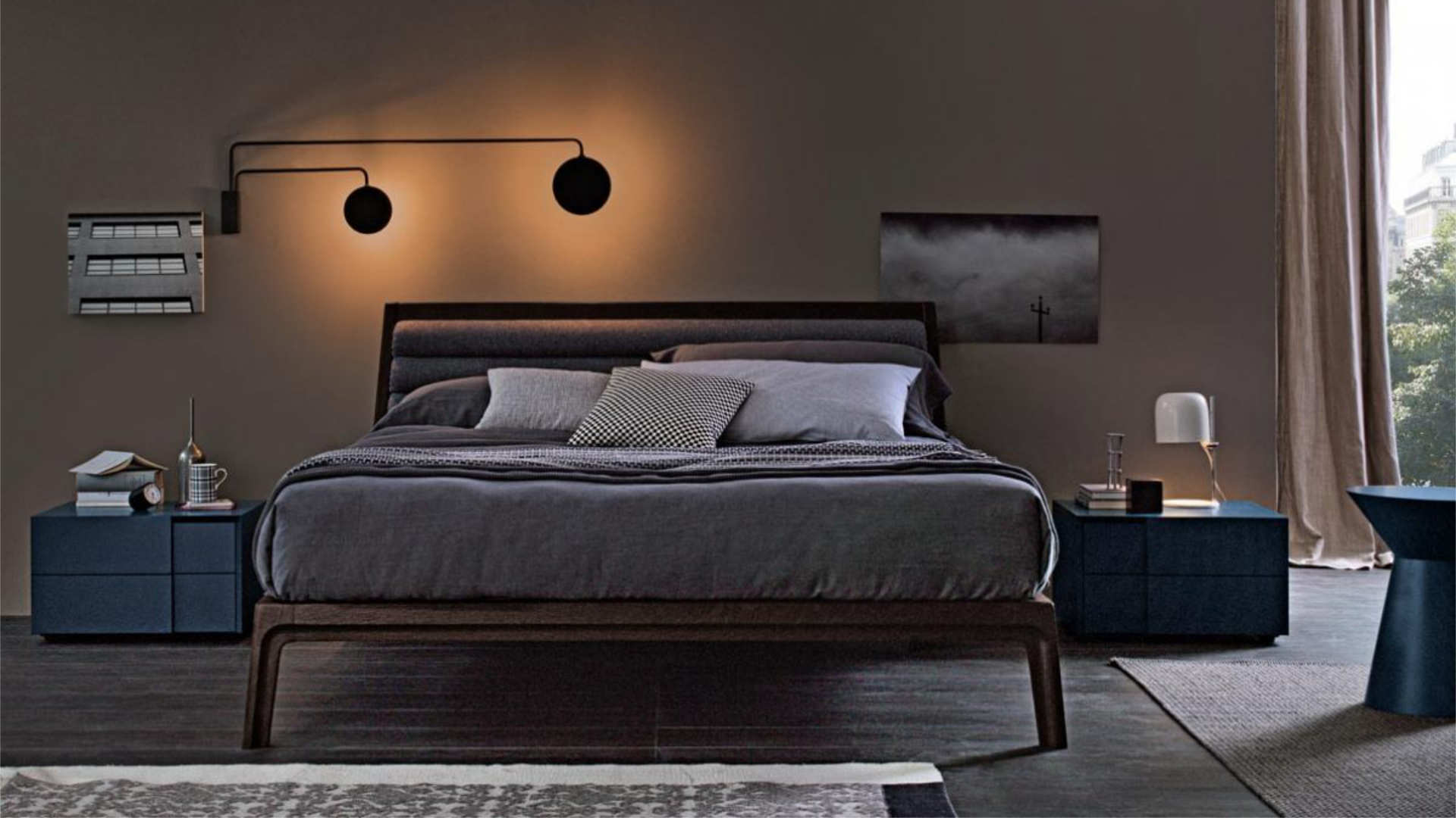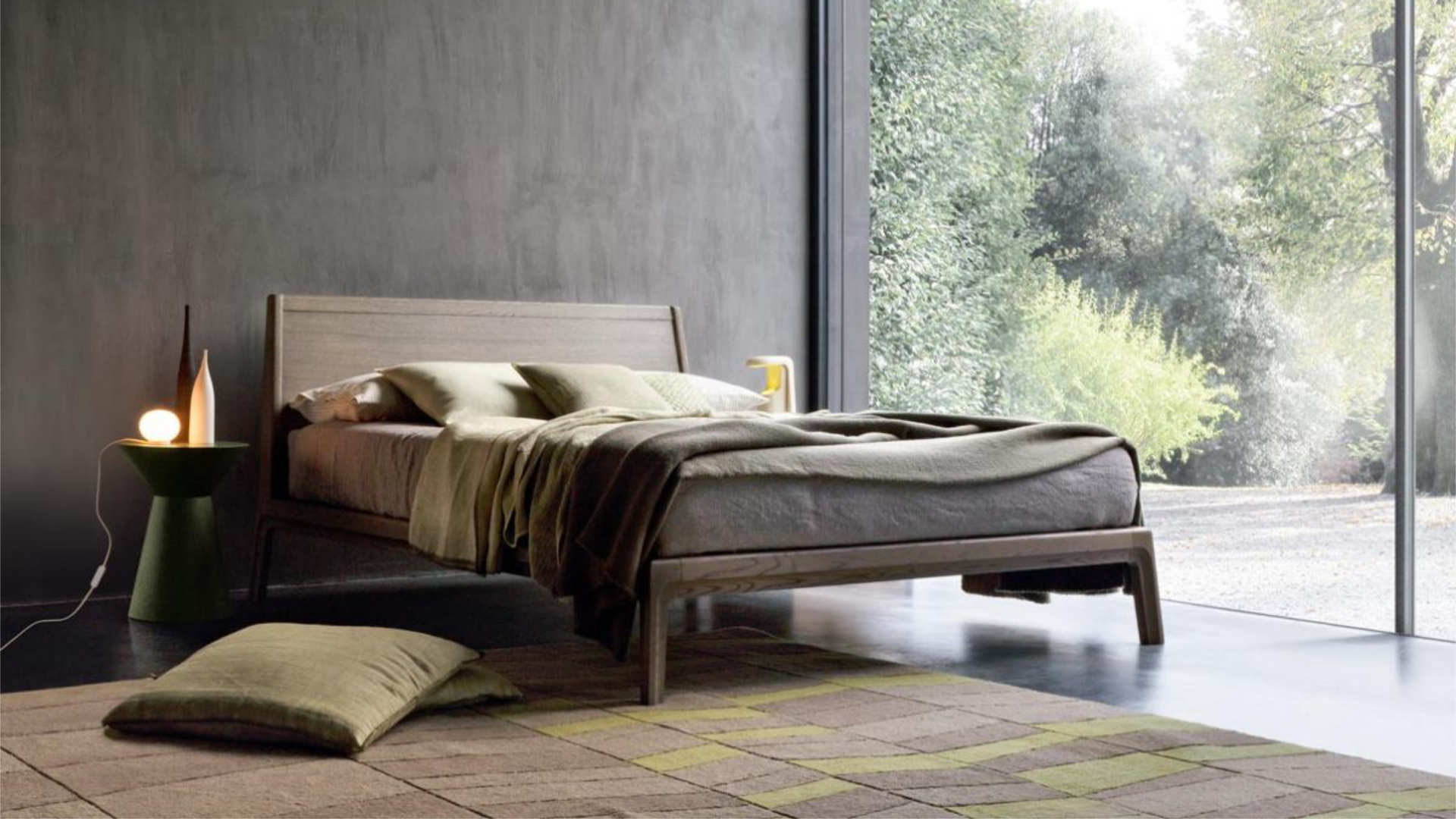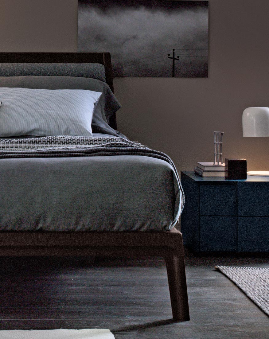 Finiture: rovere laccato poro aperto, rovere tinto, rovere termocotto. Variante testata imbottita: tessuto.