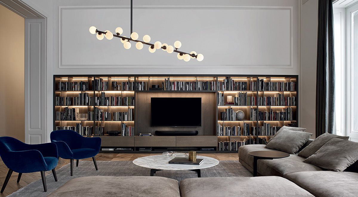 Wall System, la nuova definizione dell’area living. Un programma che progetta la libreria come centro funzionale della vita quotidiana, con la massima versatilità compositiva e stilistica. Sistema librerie a spalla portante dall’eccezionale versatilità e originalità estetica.