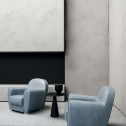Struttura in legno tamburato di abete e pioppo. Piedini in metallo grezzo spazzolato o canna di fucile opaco, protezione antiossidante con vernice trasparente opaca.