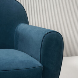 Cuscinatura di seduta in piuma d’oca lavata e sterilizzata con inserti in poliuretano espanso a densità differenziata.