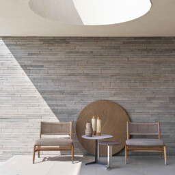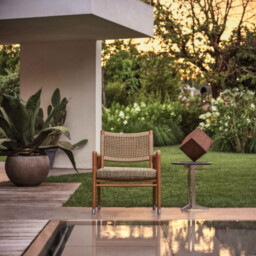 Ortigia Outdoor è la declinazione per esterni dell’omonima famiglia di sedute connotata da un’allure classico-borghese riletta in chiave contemporanea. La struttura delle poltrone Ortigia è interamente realizzata in massello di iroko, lavorato con tecniche che rimandano alla grande tradizione ebanista e proposto nelle versioni naturale oppure laccato bianco o tinto grigio. L’appoggio a terra è a mezzo di puntali in lega metallica pressofusa fresata nei e gommini in nylon. La seduta è imbottita mentre lo schienale è impreziosito da un sofisticato intreccio interamente realizzato a mano, proposto nelle varianti in corda di polipropilene o gomma poliuretanica, ambedue disponibili in un’elegante palette cromatica. La famiglia Ortigia si compone di una poltrona con braccioli, di una poltrona senza braccioli che può essere abbinata ad un poggiapiedi e di una poltroncina da pranzo. È vivamente consigliato l’uso delle apposite fodere per mantenere le poltrone Ortigia Outdoor in buone condizioni e preservare il più possibile il loro stato originale.