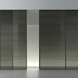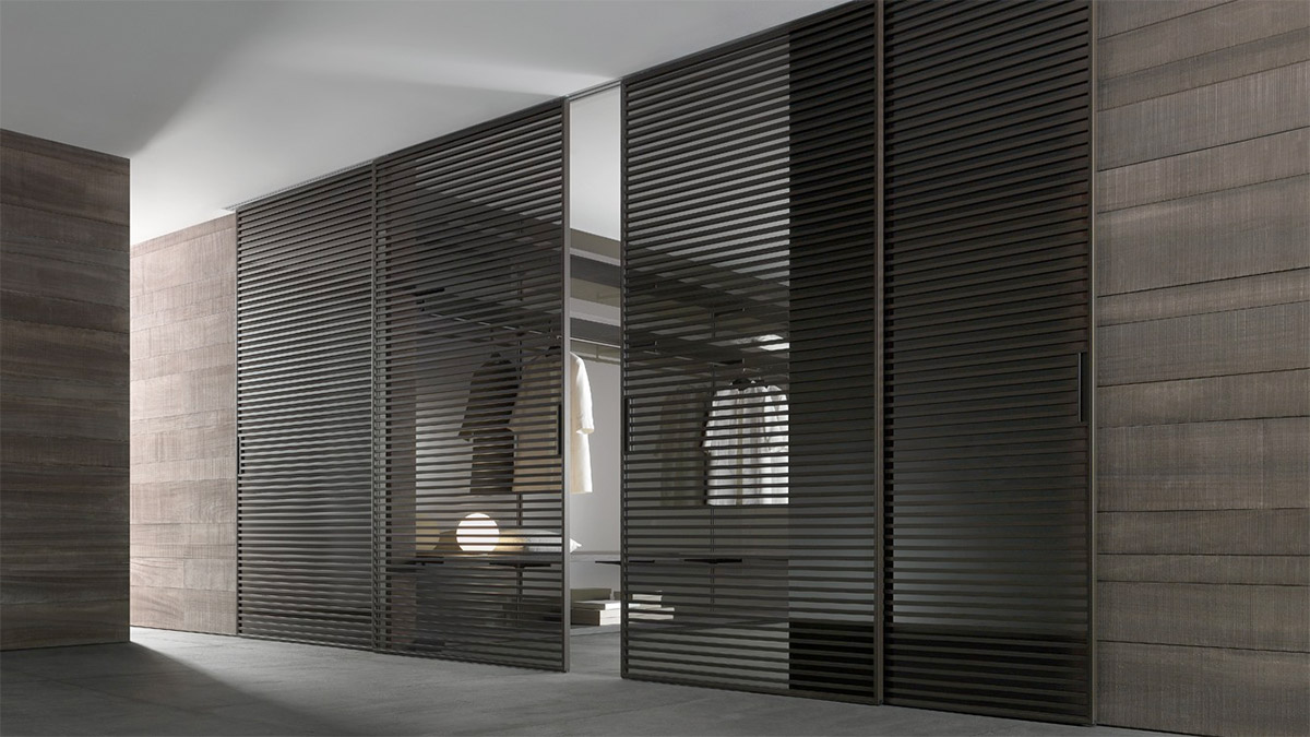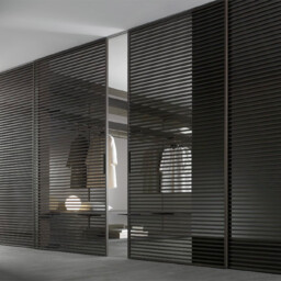 Stripe è il sistema di porte scorrevoli caratterizzato dal disegno dei traversi in alluminio, presenti su entrambe le facciate delle porte, rendendo così perfettamente bifacciali le composizioni.