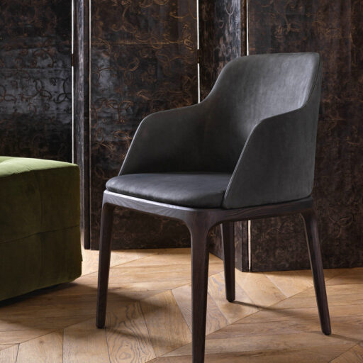 Vero classico contemporaneo, la sedia Grace ha una struttura slanciata in legno massello e una seduta morbida e accogliente, con o senza braccioli. La sedia è allo stesso tempo elemento estetico e risposta funzionale alle esigenze dell’abitare: rivestita in tessuto o pelle, è ancora più ricercata nella versione con schienale in pelle intrecciata nelle finiture Nabuk e Silk. Spesso è abbinata al tavolo Concorde, con cui condivide le linee essenziali e i materiali pregiati.