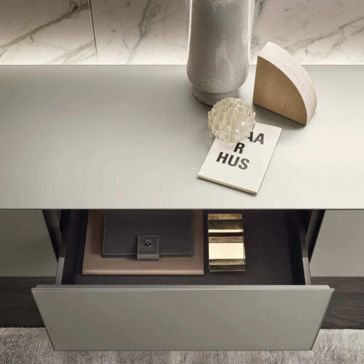Un sistema componibile per ogni zona della casa, che permette di creare madie mono e bifacciali, comodini, settimanali e composizioni sospese a parete. Un progetto che fa della versatilità la propria qualità principale, Self può essere progettato nella massima libertà, con composizioni di modularità orizzontale o contenitori che si sviluppano in verticale. Con l'eccezionale varietà dei 70 colori della collezione Ecolorsystem a disposizione, la collezione Self prevede soluzioni con anta battente, ante a ribalta, cassetti e vani a giorno.