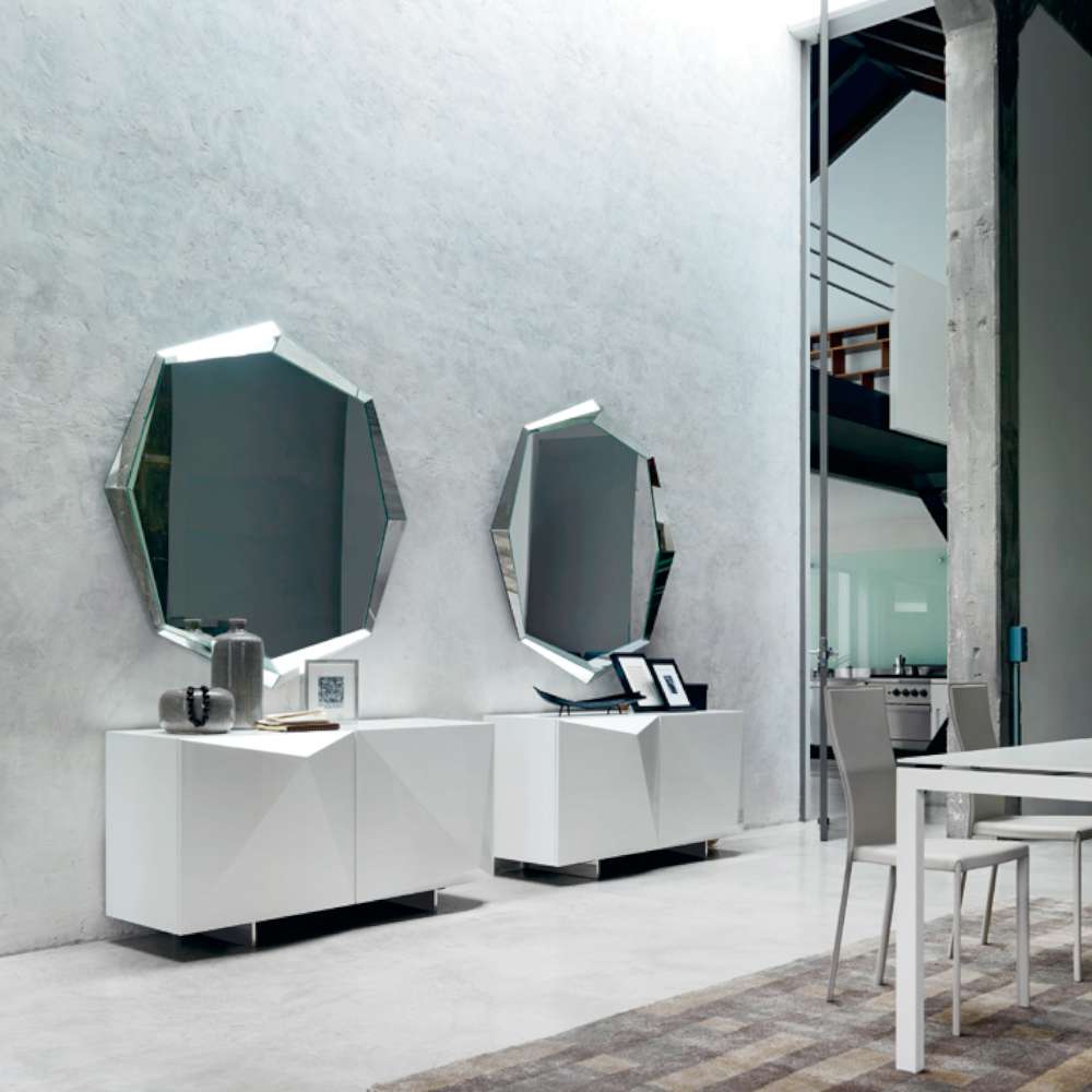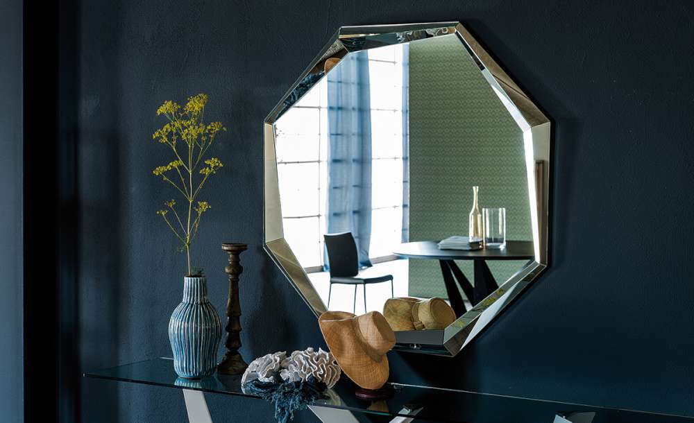 Lo specchio Emerald (Cattelan Italia) è uno specchio da parete tutto in cristallo specchiato dalla forma ottagonale con due diverse dimensioni. La cornice sembra uscire dalla superficie specchiante piatta per dirompere nell’ambiente. Un design minimale ma ricercato caratterizza questo complemento d’arredo.