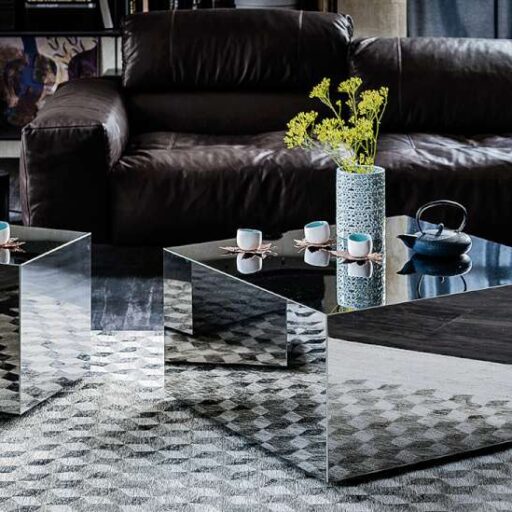 Il tavolino Dadox Puff (Cattelan Italia) è a forma di cubo o parallelepipedo su ruote in acciaio inox. Ha delle piccole irregolarità di riflessione sono dovute alla lavorazione manuale.