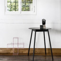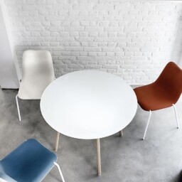 Un tavolo di altezza standard con 4 gambe, disponibile con piano in due diversi diametri, utilizzabile come tavolo da pranzo in un soggiorno o in un’ambiente cucina anche di dimensioni contenute.