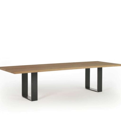 Il tavolo Newton (Riva 1920) è un tavolo con piano interamente in legno massello spessore 5 cm. Finitura a olio. Base in lamina di ferro crudo color naturale larghezza cm. 15 spessore cm. 2, trattata a olio.